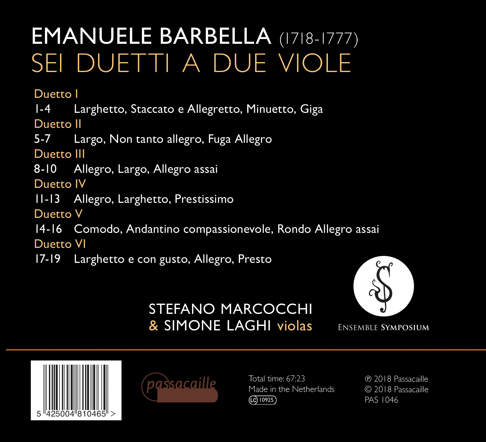Op de 300e verjaardag van de geboorte van de Napolitaanse violist Emanuele Barbella (1718-1777) besloten Stefano Marcocchi en Simone Laghi de premièreopname van diens Sei Duetti a Due Viole te organiseren.