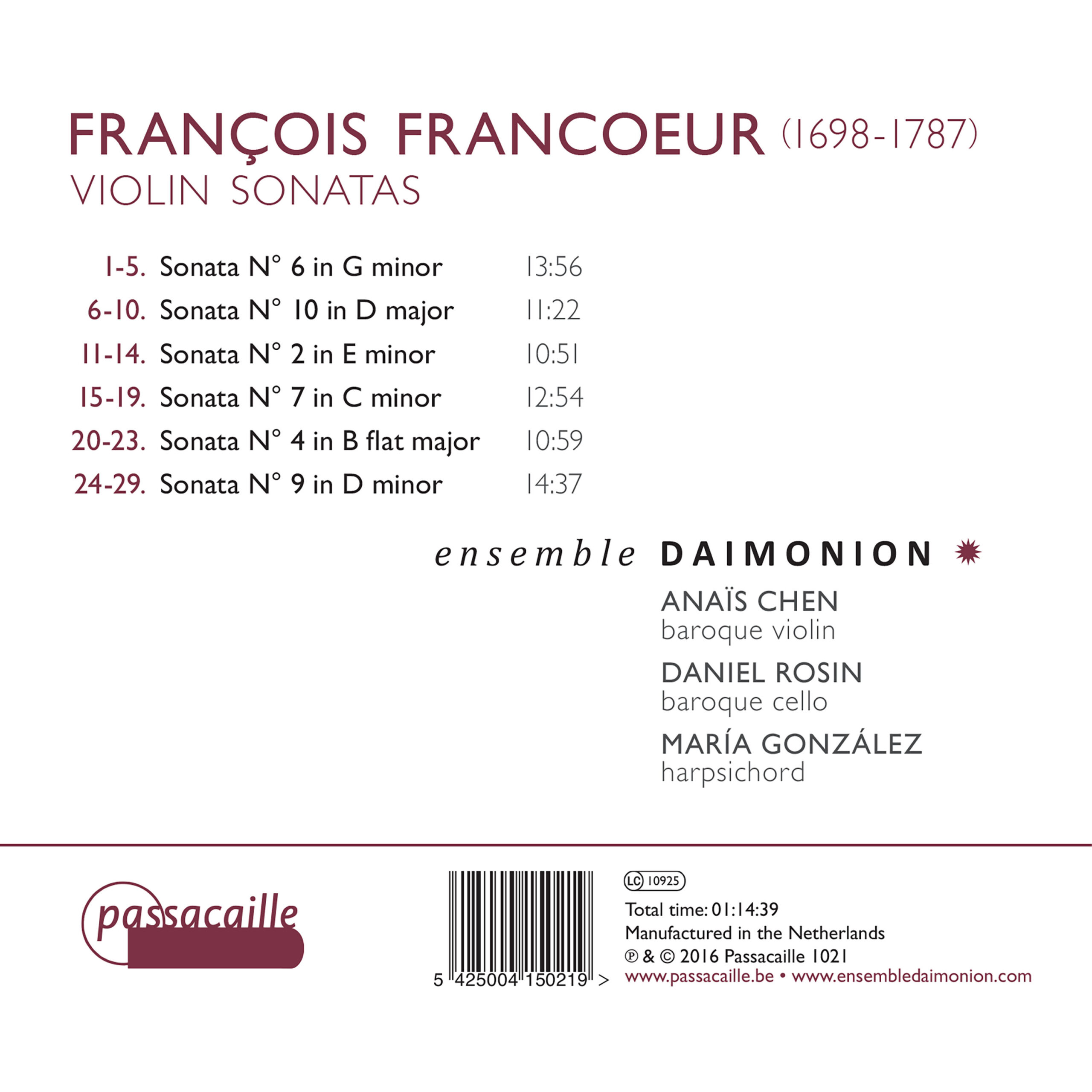 Francoeur. Violin Sonatas aantal