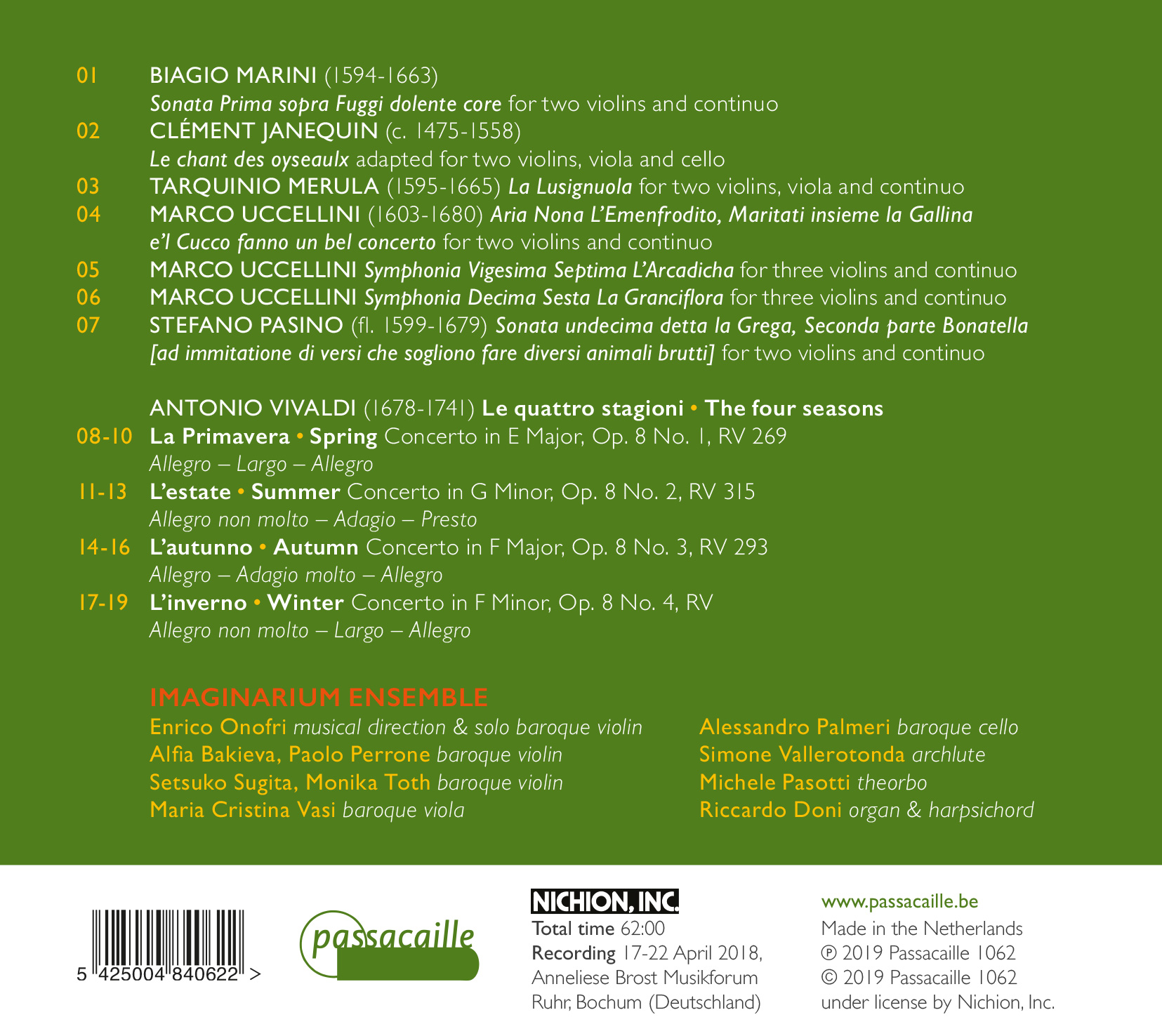 25 jaar na zijn opname bij il Giardino Armonico stelt Enrico Onofri een nieuwe versie voor waarin hij een ongeëvenaarde rijpheid en artistieke wijsheid toont. In plaats van Vivaldi tot de belangrijkste held van de opname te maken, wil hij hulde brengen aan Moeder Natuur, haar reddende kracht en de kunst die erdoor geïnspireerd is – via haar geluiden, beelden, geuren, smaken en sensaties. De muziek die “de Seizoenen” in dit album begeleidt, valt binnen het kader van de Italiaanse instrumentale zeventiende eeuw en biedt ons een verzameling muzikale juweeltjes die de weg wijzen naar Vivaldi’s meesterwerk.