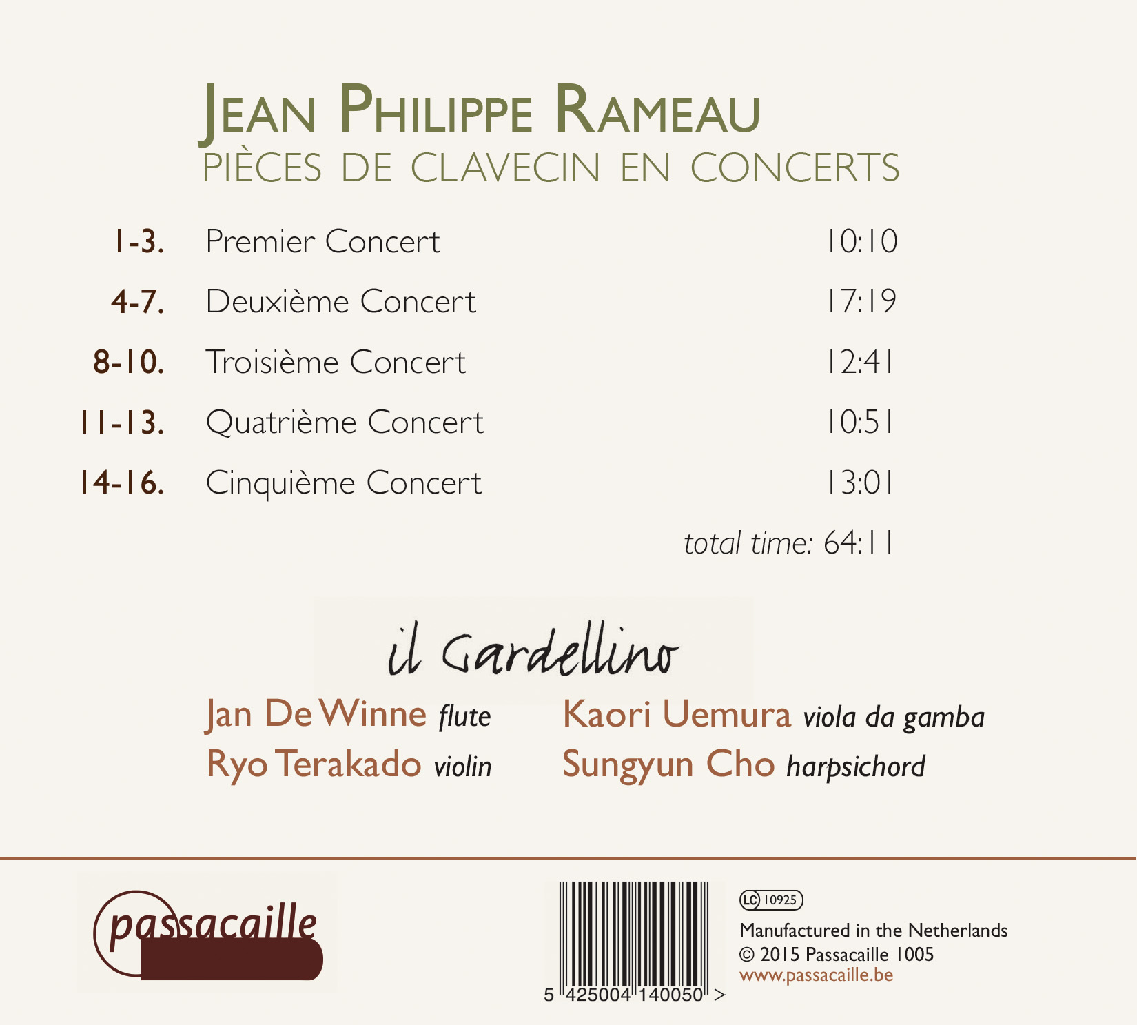 Artiesten: Il Gardellino, Jan de Winne, Ryo Terakado, Kaori Uemura, Sungyun Cho